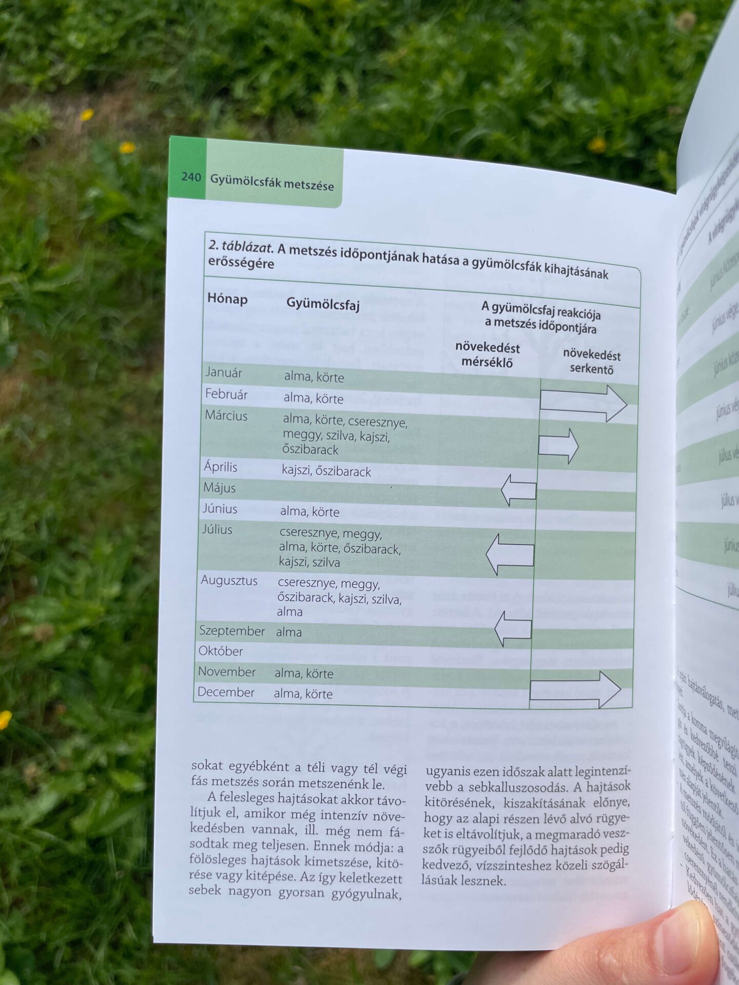 • gyümölcsfák metszését az almától egészen a dióig,